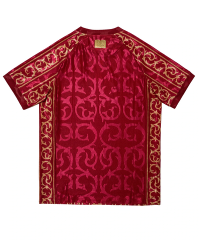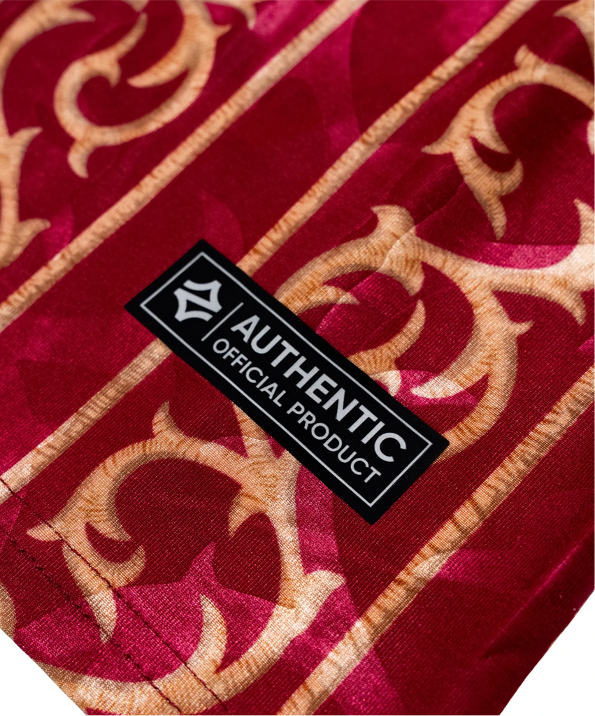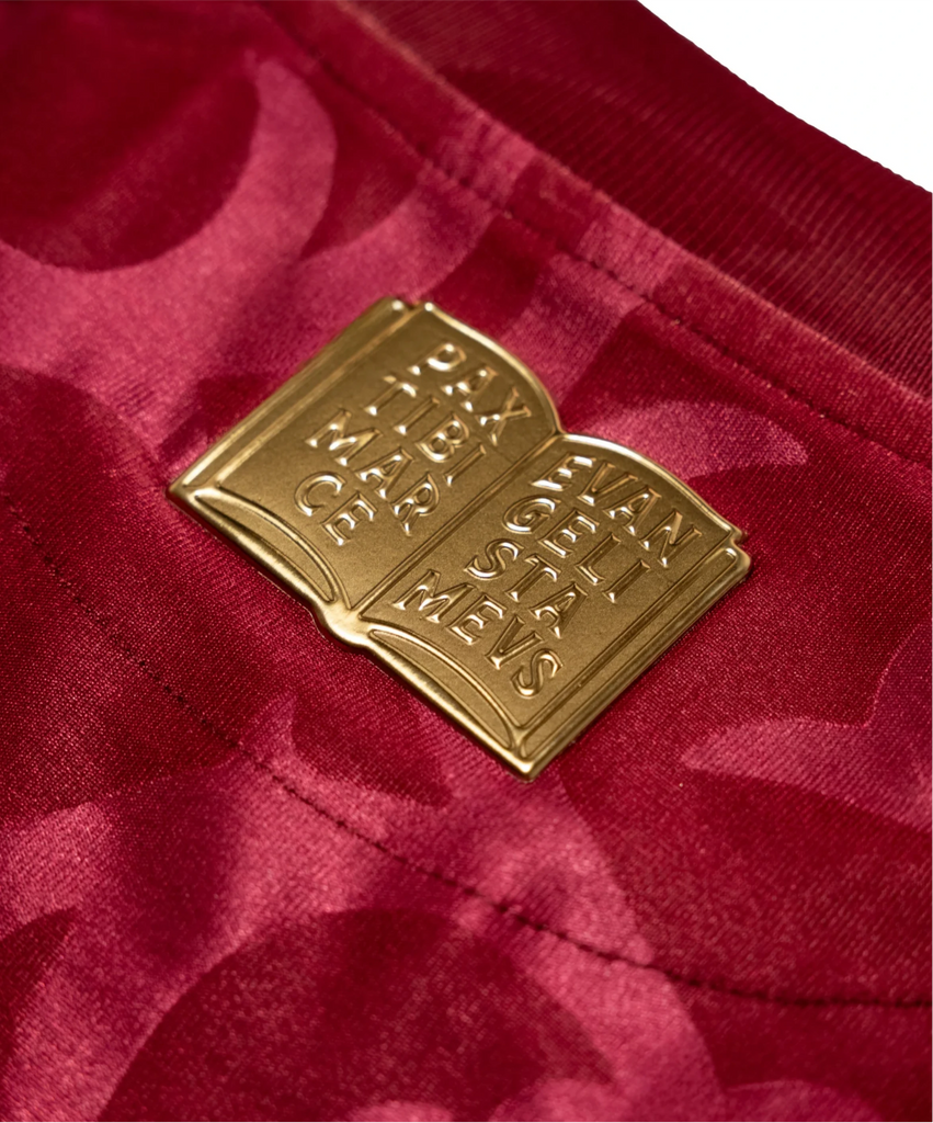 Het ontwerp van het derde tenue van Latina Calcio put inspiratie uit de decoratieve elementen van een zeldzame historische vlag, bewaard in de archieven van Venetië, echte kunst- en traditietreasure. De elegante tinten van karmozijnrood en goud vormen een duidelijke verwijzing naar de legendarische gouden vlammen van de vlag van Sint-Maarten, een symbool van kracht, rechtvaardigheid en trots.