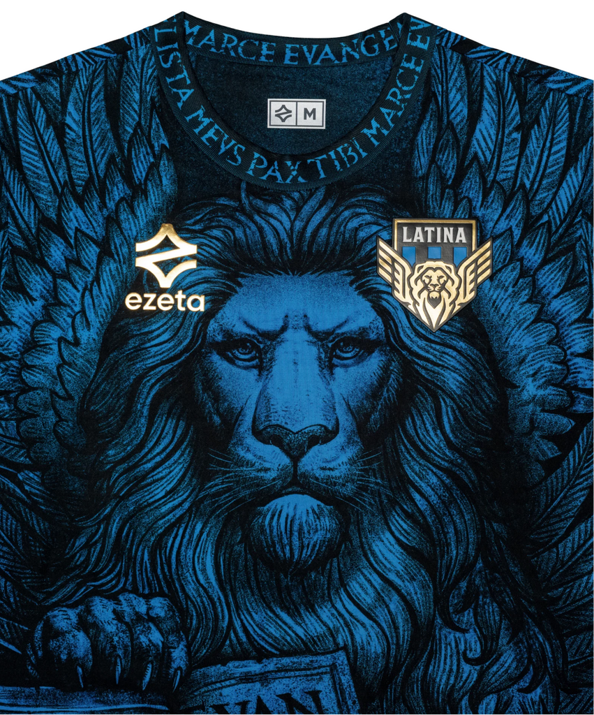 Het Latina thuisshirt seizoen 2025/2026 is het nieuwe officiële voetbalshirt van de club en straalt trots, passie en historie uit. Voor dit seizoen maken de klassieke strepen plaats voor de majestueuze Gevleugelde Leeuw van Sint-Marcus, die het hele tenue domineert en kracht en eenheid symboliseert. Het thuisshirt is daarmee niet alleen een sportief tenue, maar ook een cultureel symbool dat het erfgoed van de stad Latina weerspiegelt.